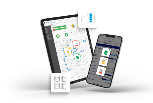 Our highly configurable platform is prebuilt with dashboards customized to view tank location by customer and tank type, tank level and various sensor data, emergency alerts, and hardware and battery status.
